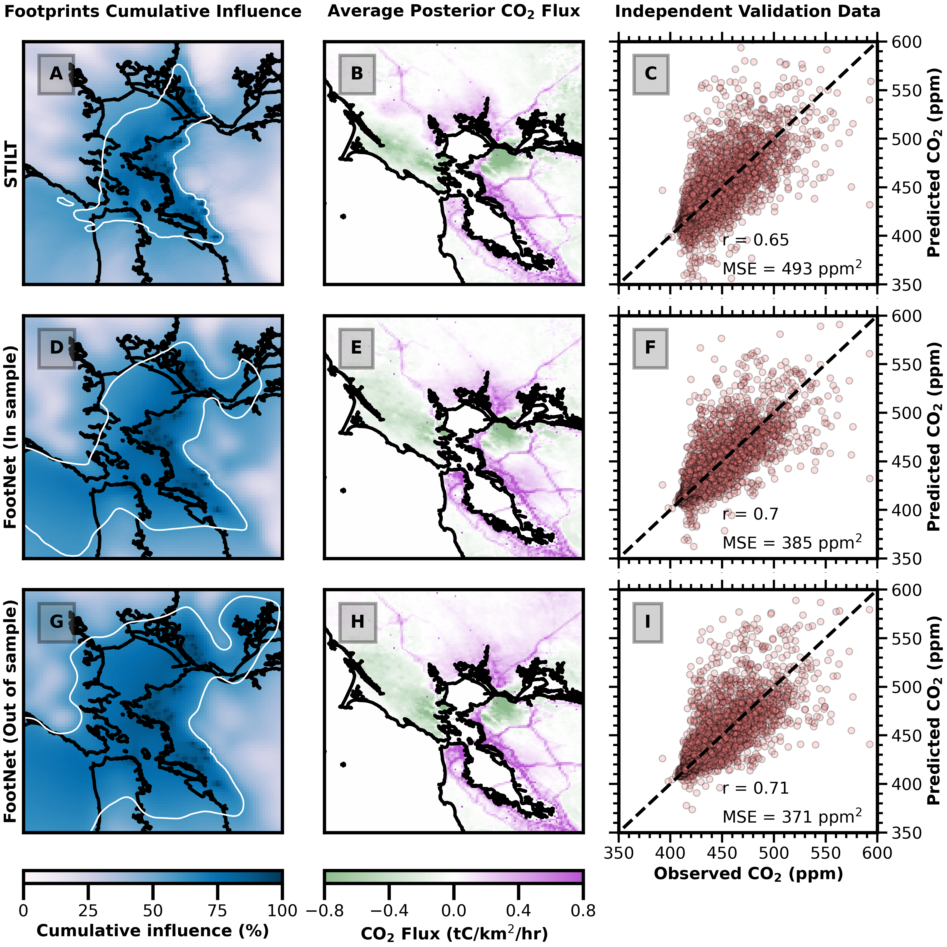 Here we developed a computationally efficient method for scalable GHG flux inversions using a deep learning emulator of atmospheric transport (FootNet).